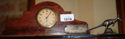 Lot #1819 - Desk clock mounted in wood with a plaque