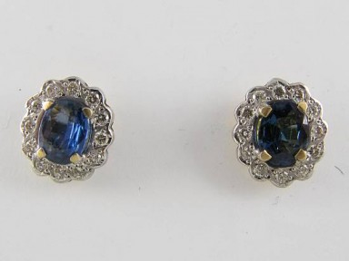 Lot #342 - A Pair Of Sapphire And Diamond Oval Cluster Earrings