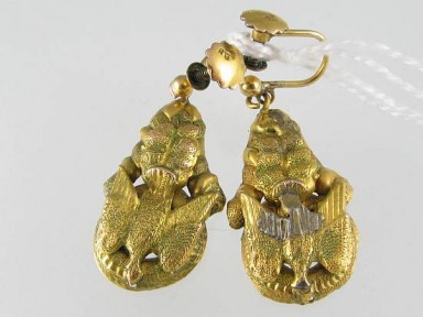 Lot Description:A Pair Of Victorian Gold Drop Earrings