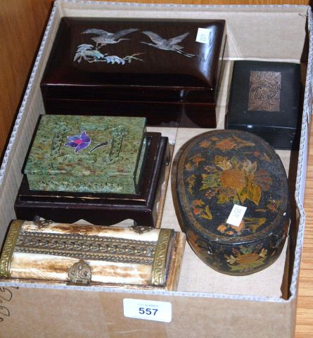 incl. carved stone, bone, lacquer, metal & papier mache, all variously decorated, interesting collection -