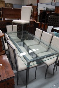 Lot Description:Glass topped dining table with eight chairs
