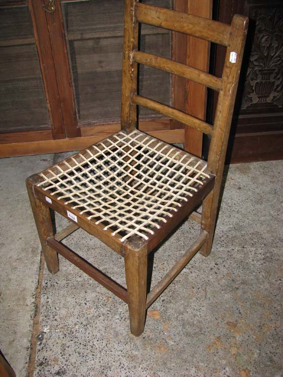Lot #F152 - Antique ladder back chair, woven leather seat