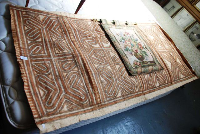 Lot #117 - Hand painted Tapa cloth with wooden wall hanging mounts