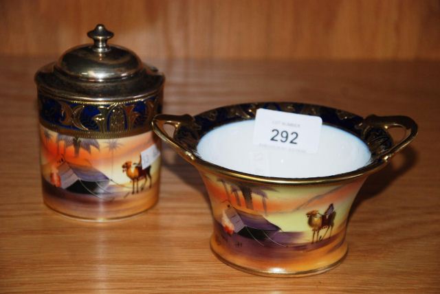 together with a lidded conserve jar with silverplate lid, each with desert Bedoin scene -