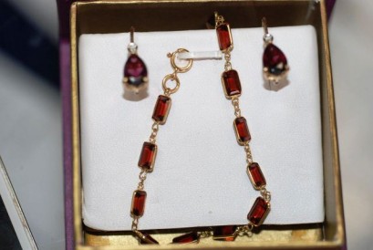 Lot Description:Lovely earring & bracelet set garnet