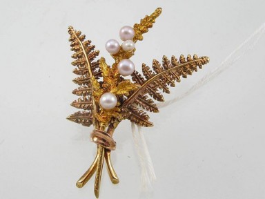 Lot Description:A 9ct Gold And Akoya Cultured Pearl Spray Brooch