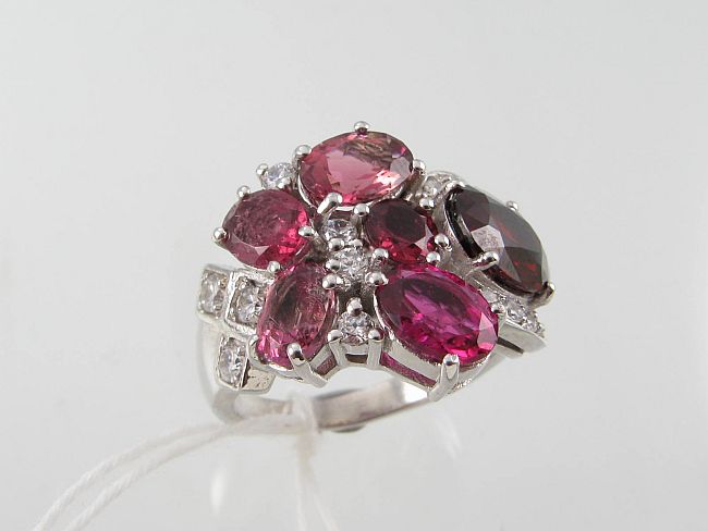 Lot Description:A Pink Tourmaline, Garnet And Cubic Zirconia Cluster Ring