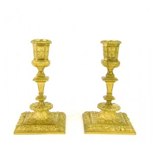 Lot Description:A pair of Regence style gilt bronze candlesticks, French 19th Century