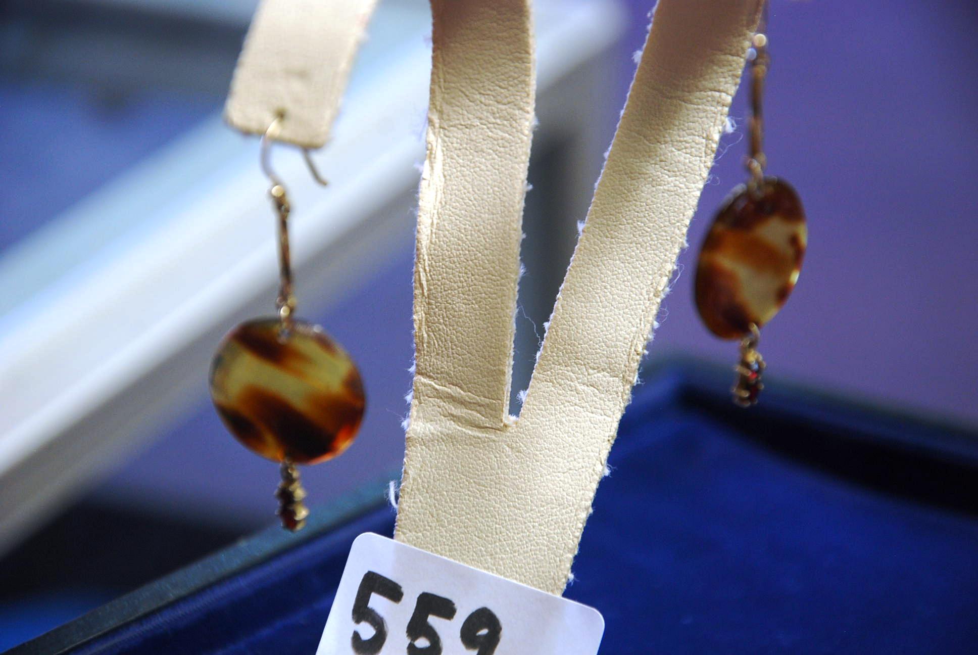 Lot #559e - Pair of tortoise shell and garnet earrings