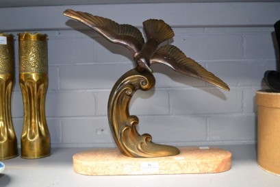 Lot #24 - French Art Deco bronze seagull on a crest of a wave