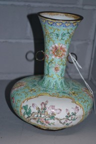 Lot Description:Chinese Canton enamel squat bottle form vase