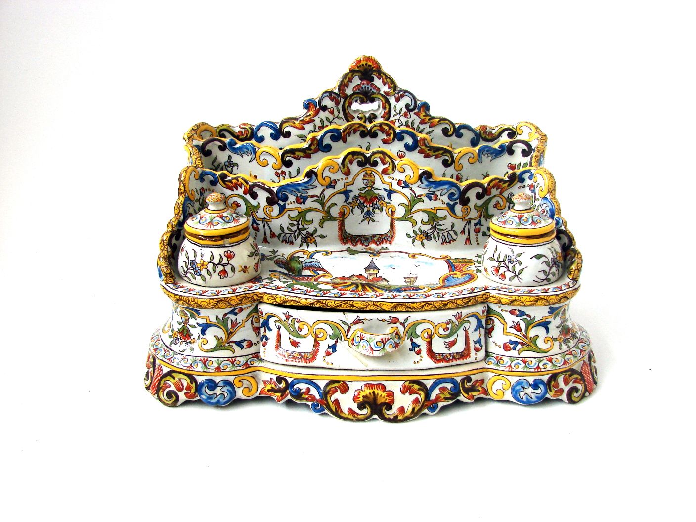 Lot #365 - An Italian 20th Century Firenze Ceramic Inkwell/Letter Stand