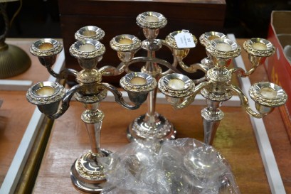 Lot Description:Three Georgian style silver plate candelabra sticks