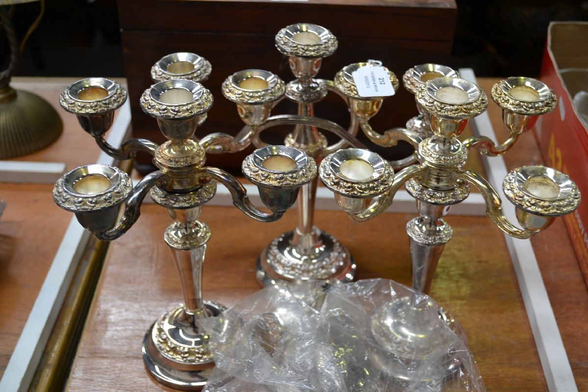 Lot #212 - Three Georgian style silver plate candelabra sticks