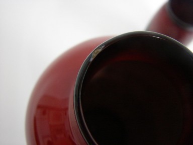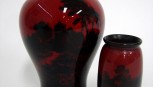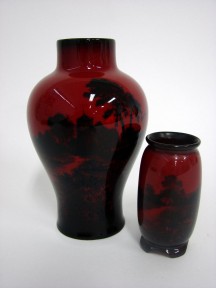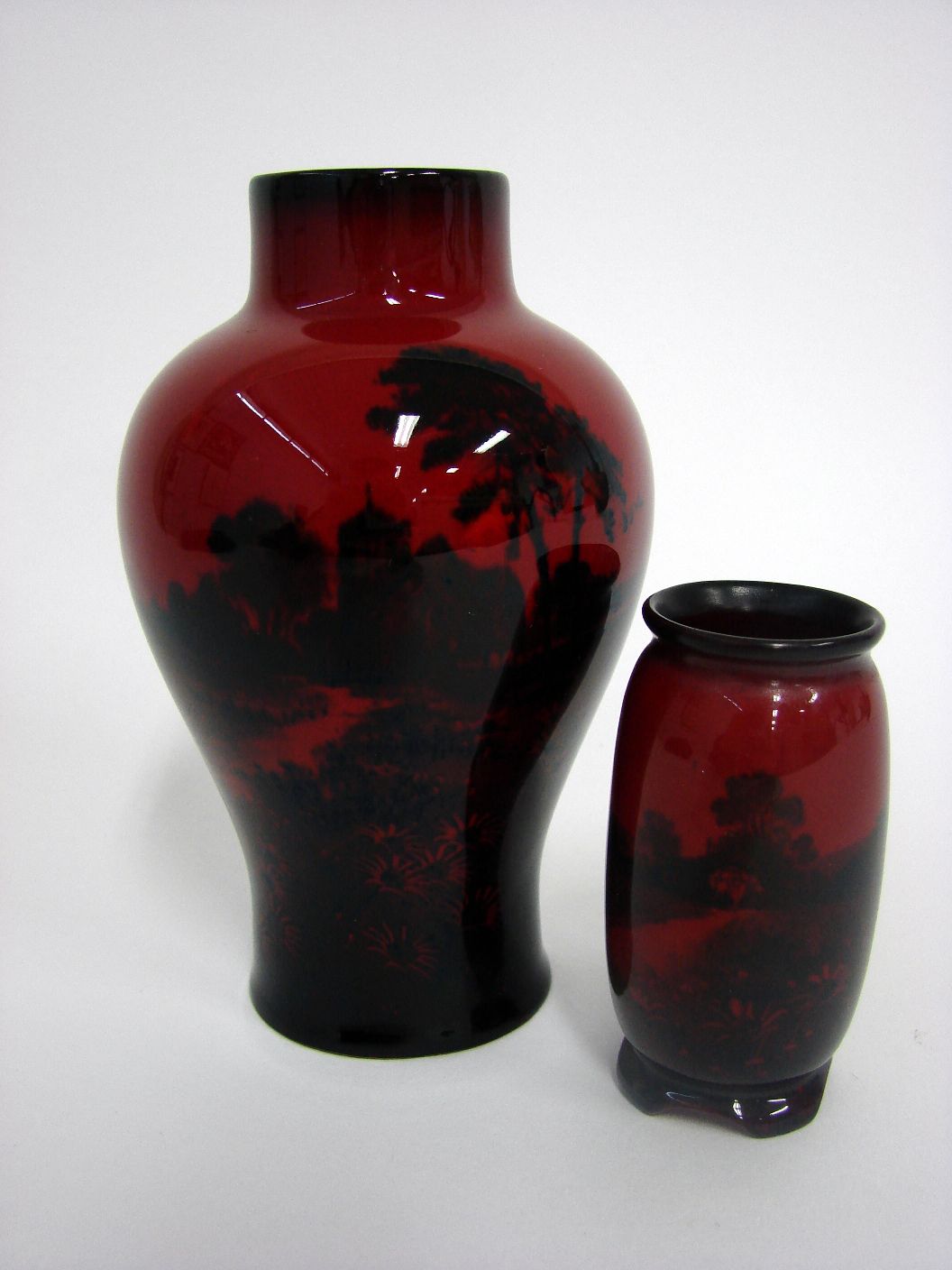 each enriched with country cottage scenes, the smaller with restored rim 15cm & 8cm high -