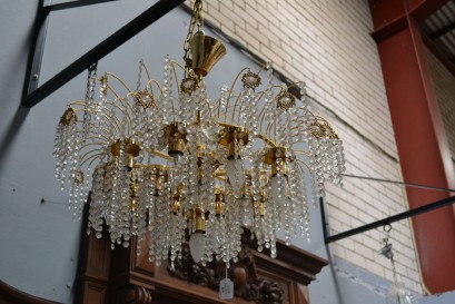Lot Description:1970's gilt metal & crystal multi light chandelier