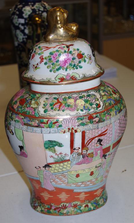 Lot Description:Large Chinese polychrome lidded jar