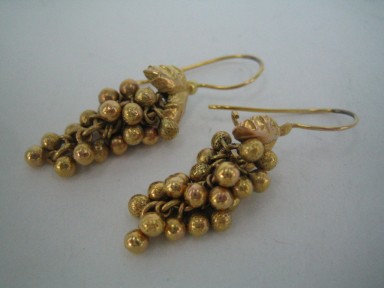 bunch of grapes design; hook fittings; unmarked, tests approx 9ct gold. Wt 5g. -
