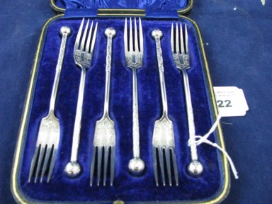 Lot Description:Cased antique set of 6 cake forks