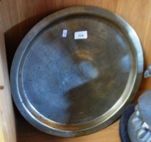 with engraved decoration of figures, standing on a balcony, floral detail border, diameter is 42cm -