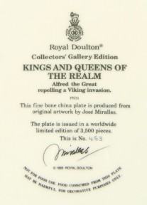 Lot Description:A Royal Doulton plate, Kings and Queens of the Realm, Alfred the Great Repelling Viking invasion