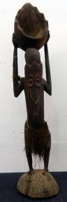 Lot Description:A carved wooden totem figure carrying a fire hearth from Japandai Village, Sepik River Region