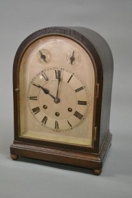 Lot #362 - Vintage English oak cased chiming mantle clock