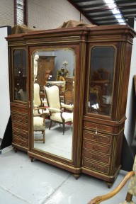Lot Description:Antique French brass bound and inlaid three door display armoire