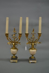 Lot Description:Fine pair of white marble & gilt metal two branch candlestick lamps circa 1900