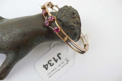 Lot Description:Antique pink tourmaline, diamond and 15 ct yellow gold bangle