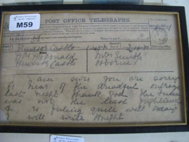 Lot #M59 - Framed telegram sent from Windsor Castle