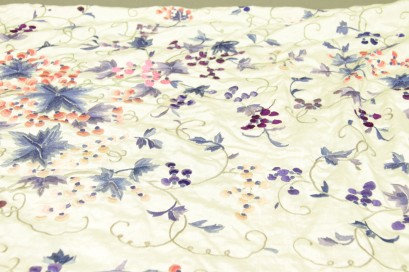 extensive floral and butterfly embroidery in coloured silks. With deep fringing.