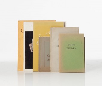 Collection includes : 'John Kinder : the Auckland City Art Gallery, June 1958', by Hamish Keith. Published by the Auckland City Art Gallery, [1958]. Mild wear. 'Handbook to the Greek vases in the Otago museum', by J K Anderson. (Otago Museum, 1955). Wear and inscriptions. 'Summary catalogue of the collection of the Auckland City Art Gallery', published by the Auckland City Art Gallery, [1964]. Wear, soiling and creasing. 'Captain James Cook : his artists and draughtsmen : Auckland City Art Gallery, October - December 1964.' (Auckland : Wakefield Press, 1964). 'An Exhibition of chinese art : held in 1937 at Auckland, Wellington, Christchurch and Dunedin in the dominion of New Zealand', edited by Captain G Humphreys-Davies. Published by the [War Memorial Museum], 1937. Wear and soiling. 'Portrait of Mexico.' Published by the [Queen Elizabeth II Arts Council, 1972]. All generally G-. [6]. -