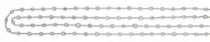 The diamond line necklace spectacle set with eighty-four pear-shaped diamonds together weighing approximately 16.46 carats, mounted in 14ct white gold, length approximately 980mm. -