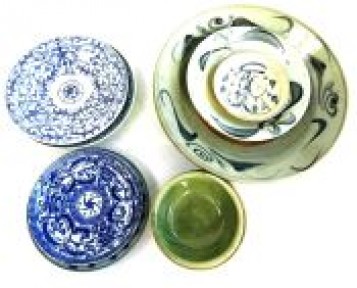 Including two blue and white kitchen ware dishes, five smaller blue & white dishes a celadon bowl and a shipwreck bowl, largest 29 cm diameter ( 9 ) -