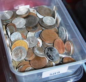 Lot #589 - Plastic tub containing a large collection of assorted world coins
