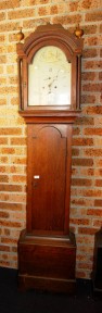 with enamelled arched dial with Chinoiserie decoration, 8 day striking movement, comes complete with key and pendulum, pendulum & minute hand in need of repair, circa 1790's -