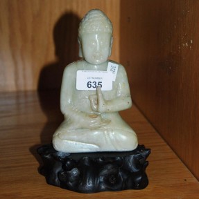 Lot #635 - Chinese carved hard stone figure of a sitting Buddha