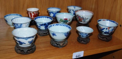 Lot #643 - Collection of 12 various antique Chinese & Japanese porcelain tea bowls