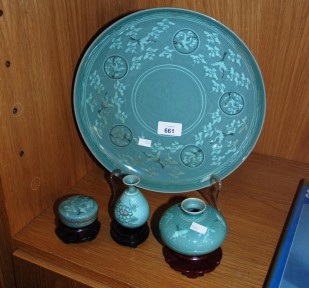 Lot #661 - Collection of 4pcs of oriental celadon pottery