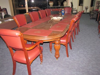 stands on carved and reeded shaped legs, made circa 1970-80 probably by Leo De Vella, length 320 cm, width 120 cm (we have the castors and brass fittings) -