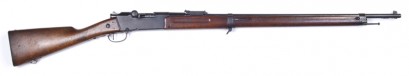 1899; 8mm Lebel; 8 shot tubular mag; 31¾" barrel; dark bore; blk military finish to metal; rear sight graduated to 800 mts; made at CHATELLERAULT Arsenal; full 2 pc stock with finger groove, straight stock & steel butt plate; vgwo & cond. -