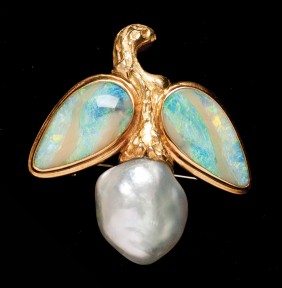 Lot Description:An 18ct gold and opal leaf and berry brooch by Tony White