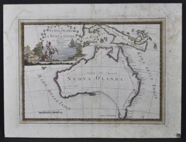 'La Nuova Olanda e la Nuova Guinea, Delineate Sulle Ultimo Osservazioni,' pub. Roma, Presso La Calografia Camerale, 1798. Hand coloured. Old central fold line. Laid down. Label verso 'The Arts Centre, Johannesburg.'