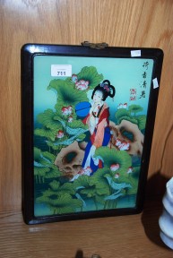 Lot #711 - Chinese reverse painting on glass of a maiden in traditional robes