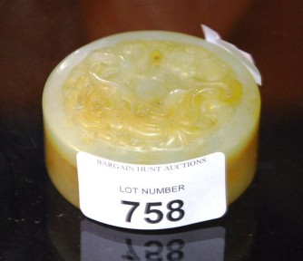Lot #758 - Chinese pale green coloured stone circular lidded pot