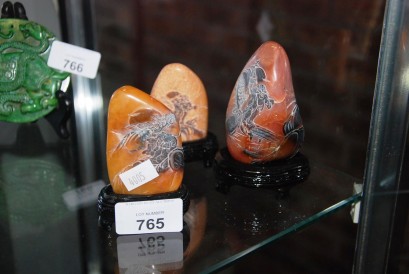 Lot #765 - 3 various carved Chinese amber coloured boulders