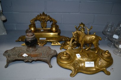Lot Description:Four antique French gilt bronze ink stands