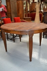 Lot Description:Vintage French oval walnut table on turned fluted legs