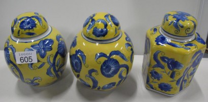 Lot Description:Pair Chinese blue & yellow glazed ginger jars